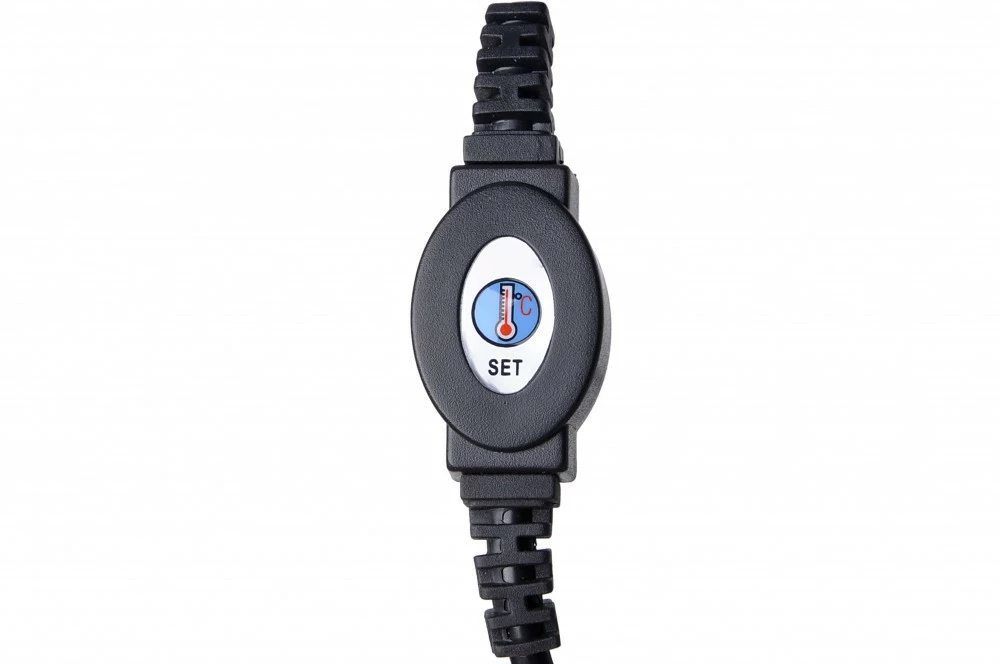 - Stellen Sie die gewünschte Heiztemperatur mit Hilfe des Knopfes am Kabel ein. Die gewünschte Temperatur können Sie im Display ablesen.