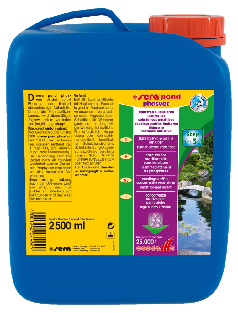 sera pond phosvec bindet Phosphat schnell, schonend und dauerhaft. Die unkontrollierte Vermehrung störender Algen wird durch diese effektive, nachhaltige Prophylaxe mittels Nährstofflimitierung von vorneherein unterbunden und langfristig gestoppt.