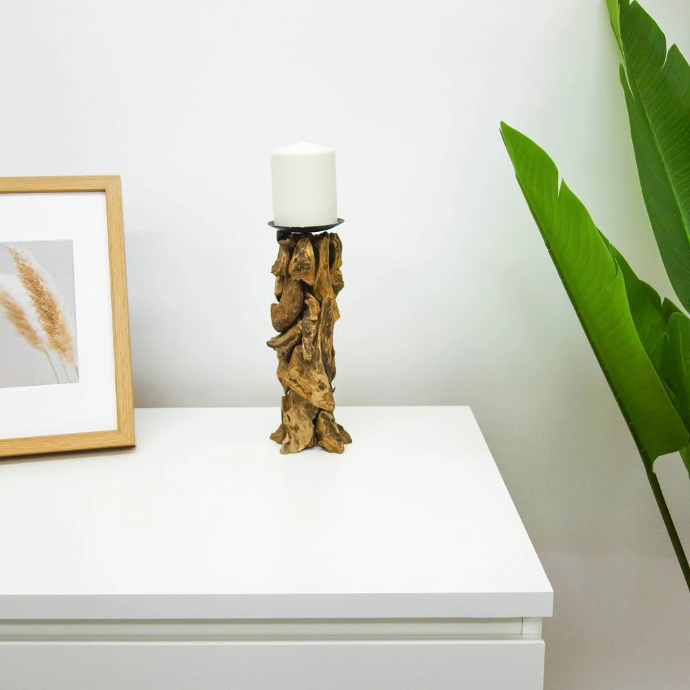 Liebevoll aus nachhaltigem Treibholz gefertigt, ist jeder Kerzenständer ein Unikat und sorgt für eine gemütliche Atmosphäre im Kerzenschein.