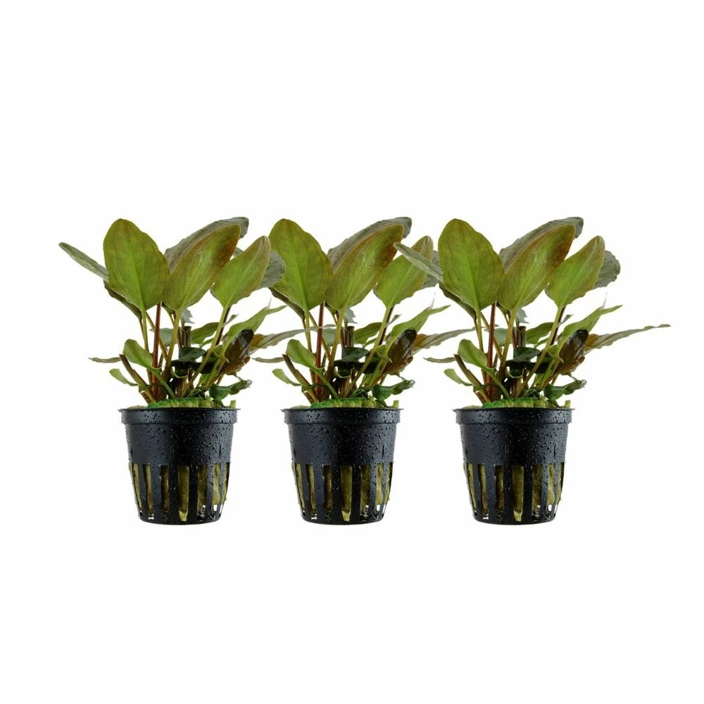 - AQUARIUM PFLANZEN: Set mit 3 schönen volldurchwurzelten Topf Pflanzen Echinodorus bleheri. Höhe der Pflanze liegt bei 10-20cm. Die Pflanze hat oliv grüne bis rot/lila farbene Blätter.