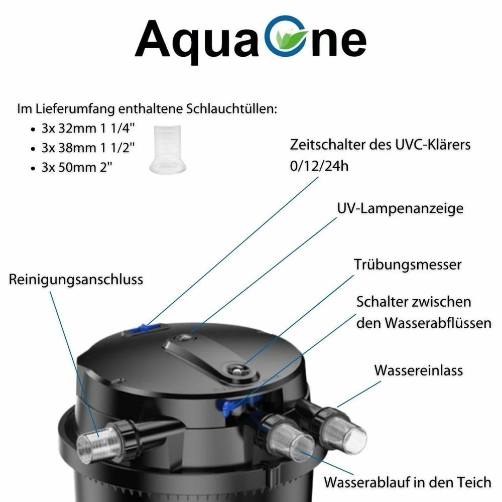 - TEICHFILTER MIT INTEGRIERTEM UVC-KLÄRER: CPU-20000 Druckteichfilter mit 36 Watt integriertem UVC Klärer. Die UV-Lampe kann zeitgesteuert und nach Belieben auf 0, 12 und 24 Stunden eingestellt werden. Die integrierte UVC Lampe sorgt für schwebealgenfreies, klares Wasser. Das Bio-Filtersystem entfernt Ammoniak und Nitrit aus dem Teichwasser. Im Filter sind zusätzlich Bio Balls enthalten.