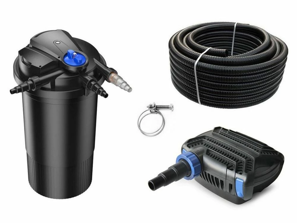 - Inklusive 10 Meter Teichschlauch mit 32mm Durchmesser und 4 Schlauchschellen