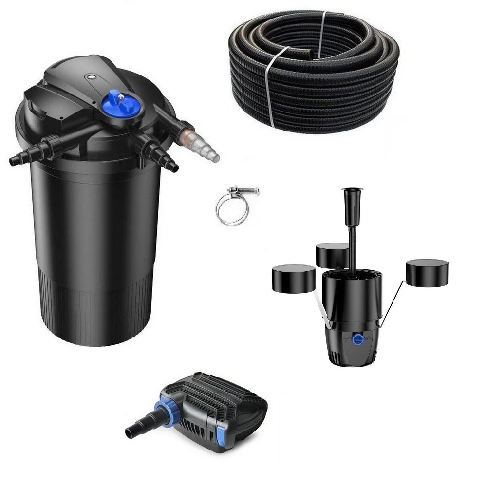 - Inklusive 10 Meter Teichschlauch mit 32mm Durchmesser und 4 Schlauchschellen