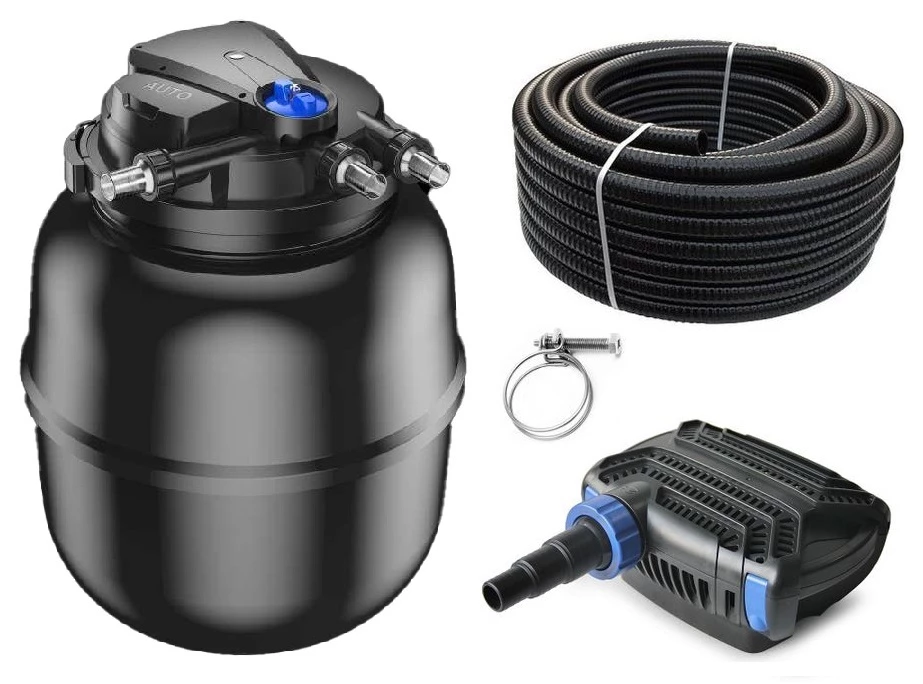 - Inklusive 10 Meter Teichschlauch mit 32mm Durchmesser und 4 Schlauchschellen