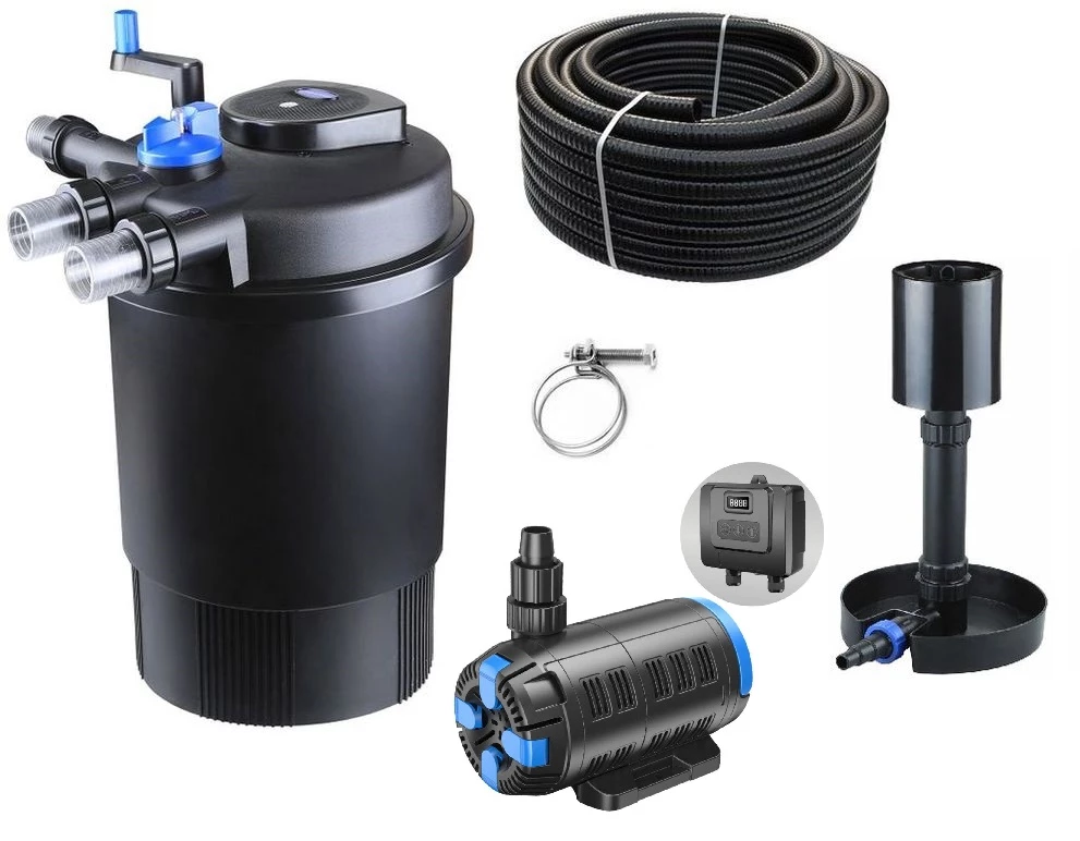 - Inklusive 10 Meter Teichschlauch mit 32mm Durchmesser und 6 Schlauchschellen