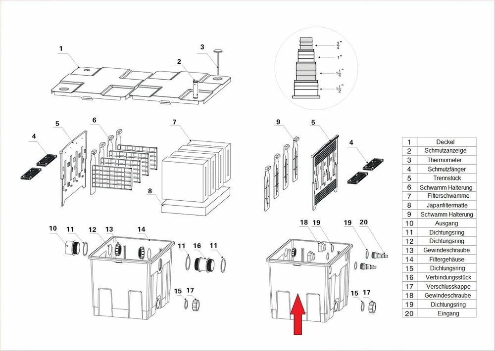 Ersatzteil „Filtergehäuse Eingang“ PART 14 des CBF-350