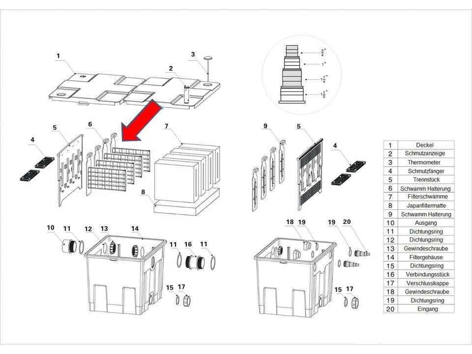 - Ersatzteil Filterschwamm Halter PART 6 des CBF Kammerfilters