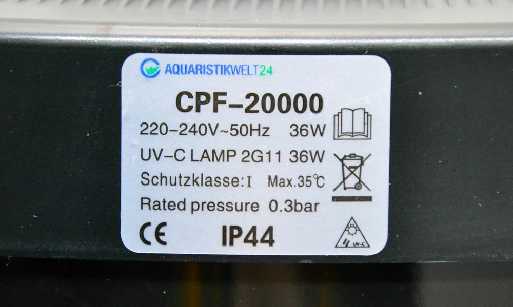 In diesem Modelle CPF-20000 ist ein 36 Watt UVC Klärer eingebaut.