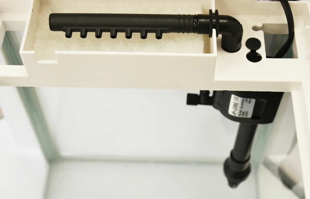 – Die Pumpe wird mit dem Verbinder am Aquarium befestig
