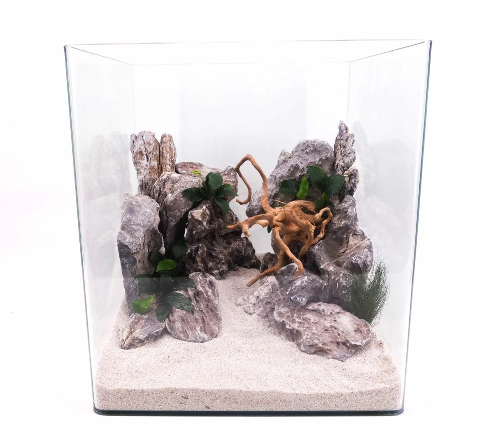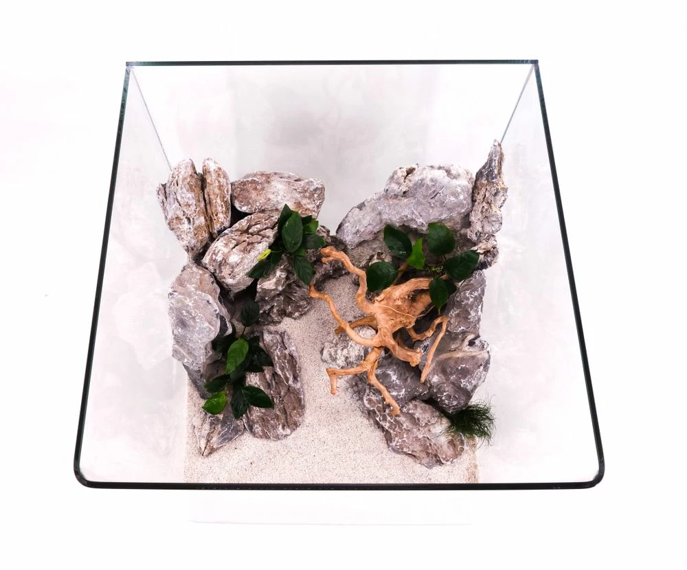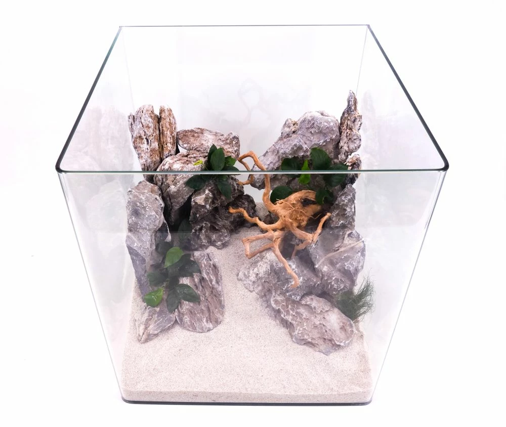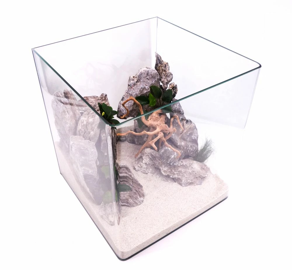Glasbecken zur Gestaltung der Unterwasserlandschaft. Einfach und klassisch in Würfel-Form. Hochwertig mit 5 mm Panorama-Glas. Ein sehr gutes Preis-Lestungverhältnis. Inklusive Abdeckung und Unterlegmatte.