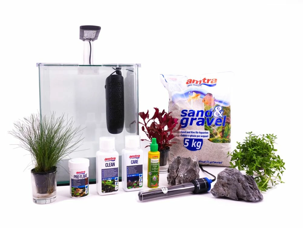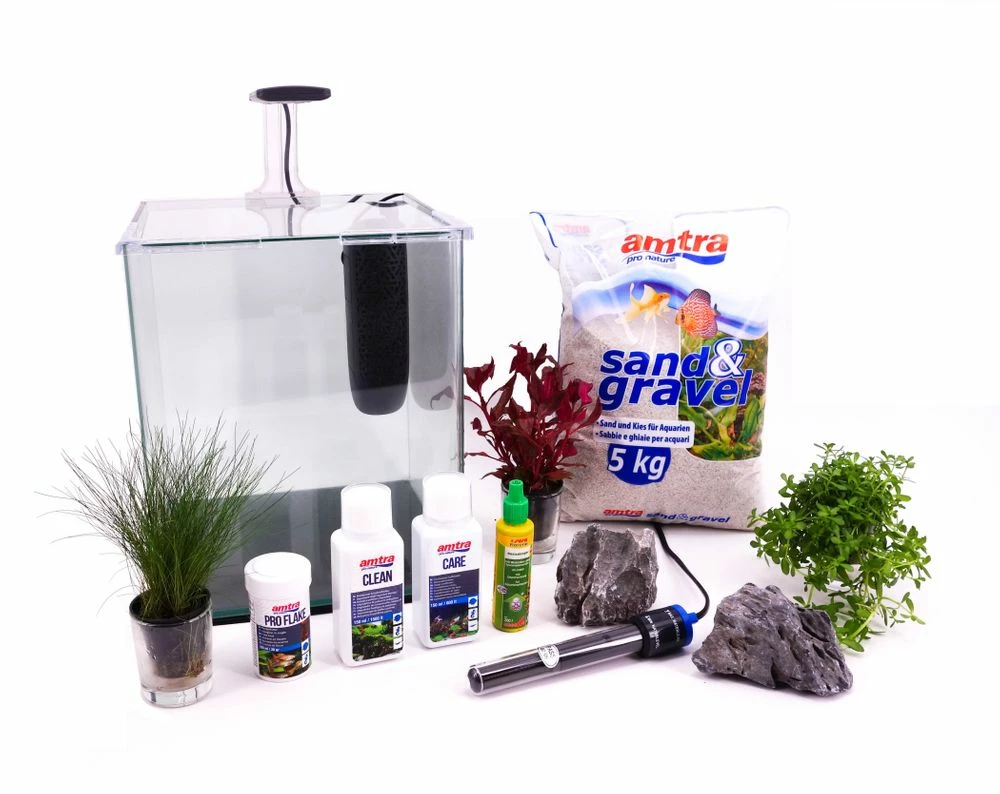 Hochwertiges Nano-Aquarium mit 5 mm Panorama-Glas und Abdeckung. Inklusive LED Belechtung, Innenfilter und Dekoration.