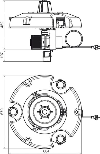 Abmessungen inkl. Düse (Ø x H): 670x540mm