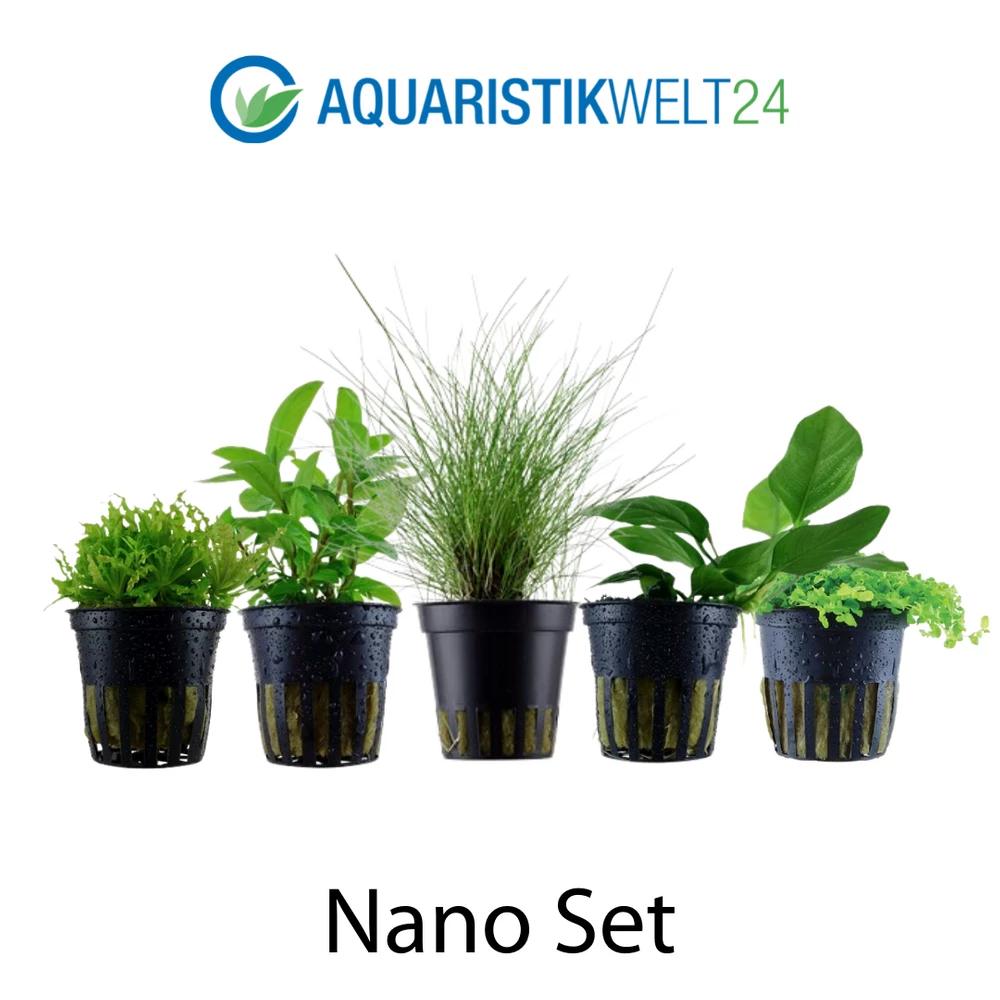 - Aquarium Pflanzen Set mit 5 schönen volldurchwurzelten Topf Pflanzen. Kleine attraktive Pflanzen, die nur bis max. 10 oder 15 cm hoch wachsen und somit auch in die Nanobecken passen.