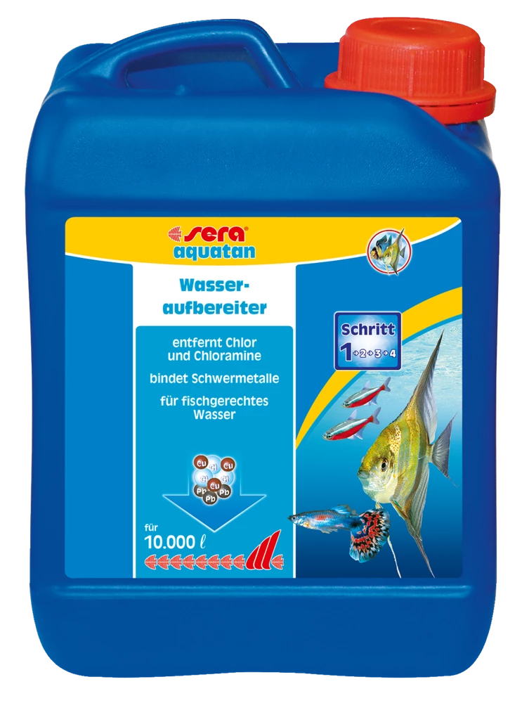 sera aquatan beseitigt sofort die Schadstoffe und bereitet das Wasser zu fischgerechtem, gesundem Aquarienwasser auf. Optimale Lebensbedingungen für Fische, Wirbellose, Pflanzen sowie nützliche Mikroorganismen sind garantiert.