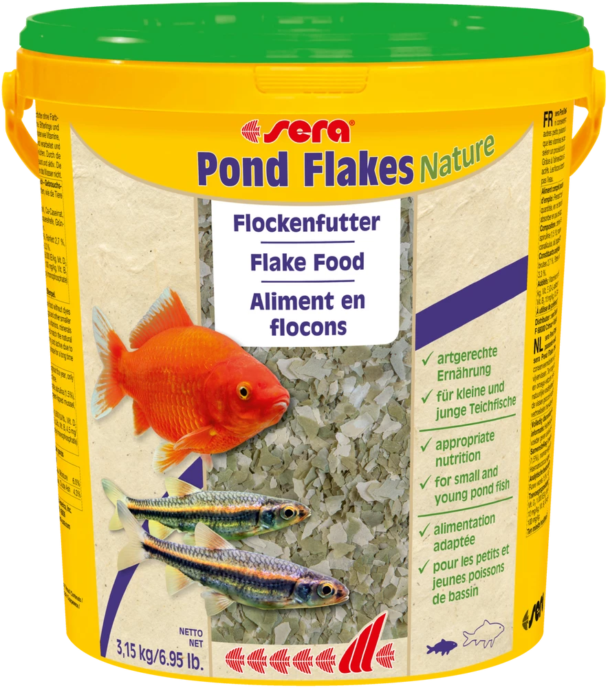 sera pond flakes ist das ideale Flockenfutter in Teichen mit gemischtem Fischbesatz, insbesondere für kleinere Tiere. Die ausgewogene Rezepturgestaltung erfüllt die Bedürfnisse einer Vielzahl von Arten. Eine schonende Verarbeitung sorgt für den Erhalt der wertvollen Inhaltsstoffe (z. B. Omega-Fettsäuren, Vitamine und Mineralien). Das sera Herstellungsverfahren ermöglicht eine dünne, leicht verdauliche und formstabile Flocke – das Wasser wird nicht belastet. Die spezielle Rezeptur erlaubt eine ganzjährige Fütterung.