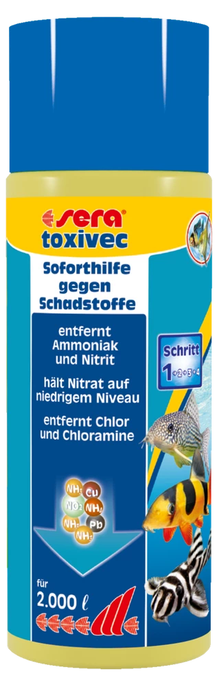 Bei akuter Schadstoffbelastung 5 ml sera toxivec auf 20 l Wasser geben. Bei höherer Schadstoffbelastung kann eine bis zu fünffache Dosierung des sehr gut verträglichen Mittels erfolgen und bei Bedarf wiederholt werden, bis die Werte sich wieder normalisiert haben. Einige weichblättrige Pflanzen können empfindlich auf das Produkt reagieren.