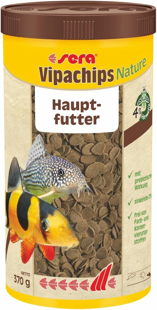 sera Vipachips Nature ist das Hauptfutter aus schnell sinkenden Chips ohne Farb- und Konservierungsstoffe für alle am Boden fressenden Fische.