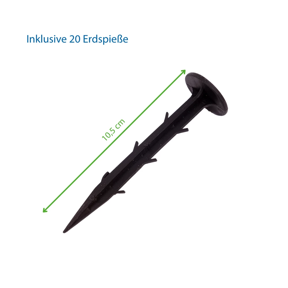 Die Netze sind klein verpackt und es sind 20 Kunststoffspieße bei jeder Lieferung inklusive.